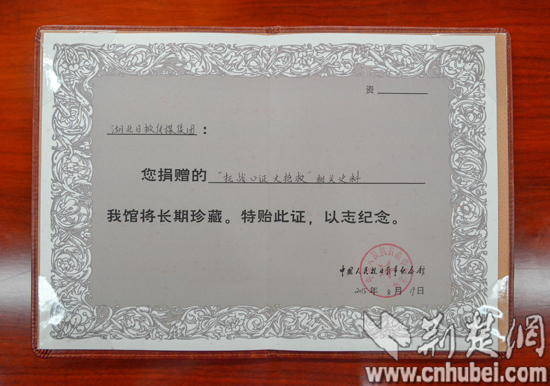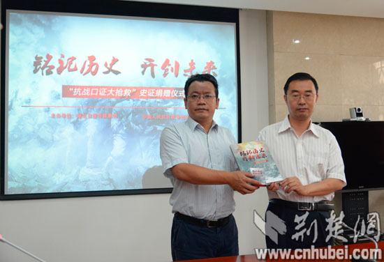 荆楚网消息(记者 余宽宏、裴斌、王振栋)今年是中国人民抗日战争暨世界反法西斯战争胜利70周年。8月19日上午,湖北日报传媒集团将30位亲历抗战老人的“口述”影像史料送到北京,捐赠给中国人民抗日战争纪念馆。