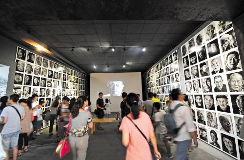 几乎每个展厅墙上均悬挂有本次策展人马金辉为抗战老兵们拍摄的照片,照片中的老人们,或健在,或已故,照片旁的文字,极其简略地概括着老人在抗战中的经历。
