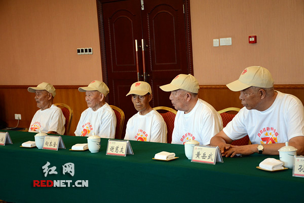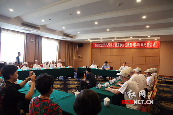 (8月20日,湖南省政府在长沙举行仪式,欢送湖南13名抗战老战士、3名英烈子女到北京参加抗日战争胜利70周年纪念活动。)