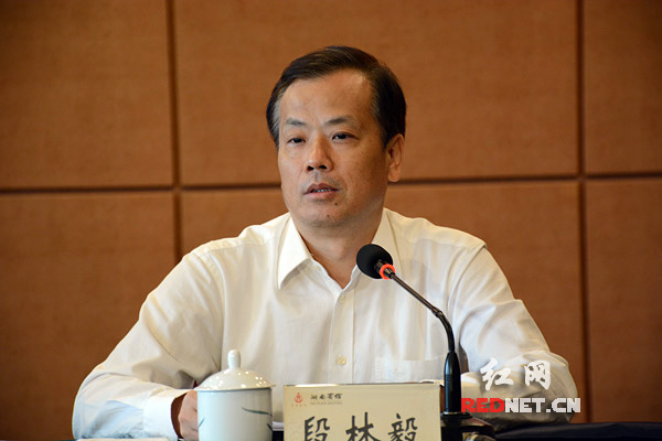 (湖南省民政厅厅长段林毅主持欢送仪式。)