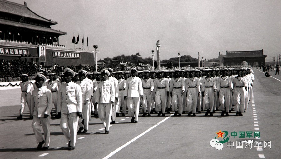 1954年10月1日,在新中国成立5周年的阅兵中,海军学员方队气势如虹地通过天安门广场,站在城楼上的毛主席频频点头,高兴地对海军司令员兼大连海校校长肖劲光说:“海军走得好,走得像一个人一样!”