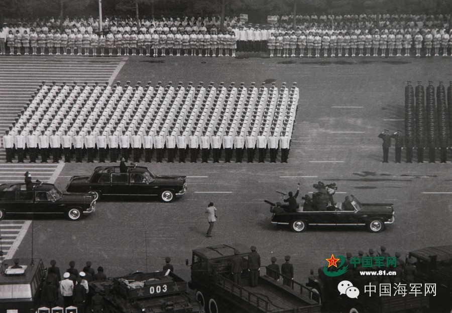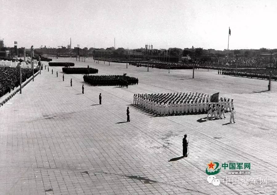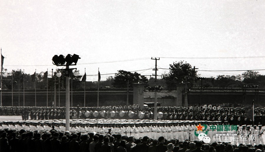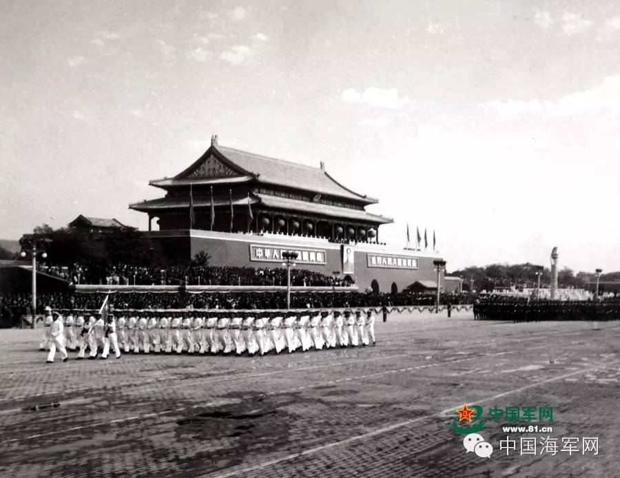 1959年国庆十周年大阅兵,由大连舰艇学院组成的海军学员方队第11次正步走过天安门,毛主席满脸笑容地对肖劲光司令说:“这一次,还是海军方队走得好!”阅兵结束后,海军方队又一次扛回了“受阅方队第一名”的红旗。