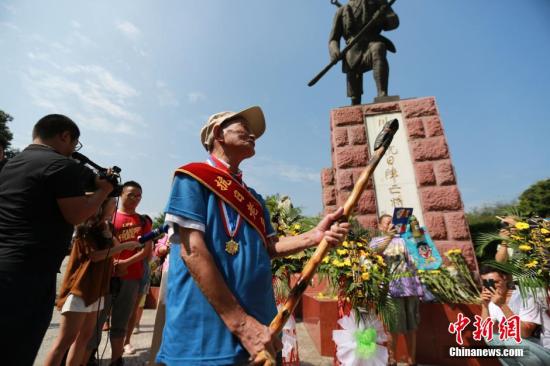 四川98岁抗战老兵用拐杖还原“拼刺刀杀鬼子”。张浪 摄
