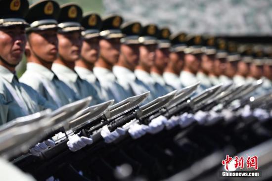 8月22日,阅兵徒步方阵正在紧张训练。当日,位于北京昌平的阅兵训练基地接受境内外媒体采访拍摄。近50家境内外媒体90余人来到基地采访。 中新社发 廖攀 摄