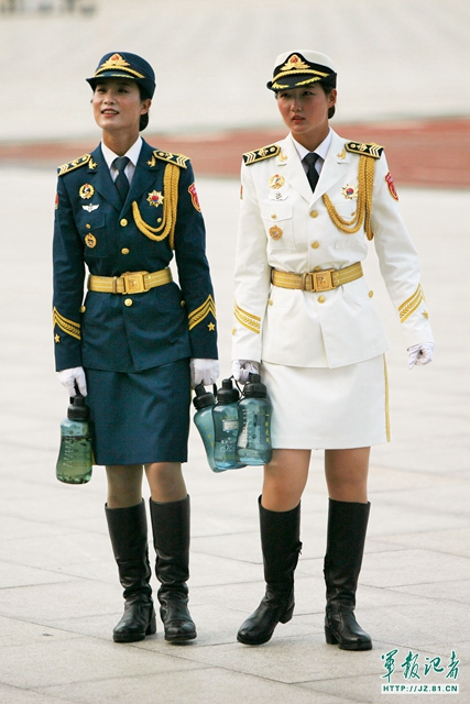 高强度训练使得方队官兵对水分补充的需求异常大,用的都是超大型水壶。