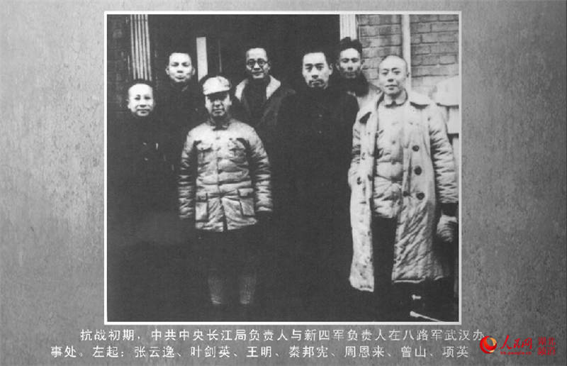 抗战初期,中共中央长江局负责人与新四军负责人在“八办”合影