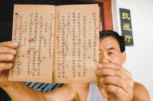 20多年来,山西省永济市市民陈庆云从民间收集了大量的古家具、名人牌匾以及350多件抗战物品。前几年,陈庆云在陕西省华阴市收集抗战实物时无意中看到了一本学生日记,日记里面记录了日军侵略我国及飞机轰炸陕西时的罪行。“当时就觉得很珍贵,就花钱把它买了回来。”陈庆云说。