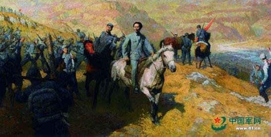 油画《转战南北——抗战中的毛泽东与周恩来》(局部) 作者:汤沐黎
