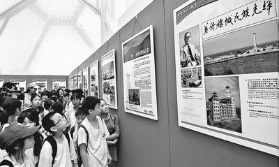 万里长城万里长。祖国壮美山河的背后,一张张抗战老照片排列成记忆的长廊,无声地诉说着过往。国家游泳中心一楼展厅,国务院侨务办公室主办的“华侨与抗日战争——纪念抗战胜利七十年”图片展正在这里举行。从“‘七七事变’前华侨的抗日救亡运动”“全面抗战爆发,华侨抗日救亡运动掀起高潮”“参加侨居地反法西斯斗争”到“永恒的纪念”与“牢记历史、莫忘国耻”,5个部分共百幅珍贵历史图片再现了广大海外侨胞齐心协力、各尽所能,支援祖国抗战的光辉历程。