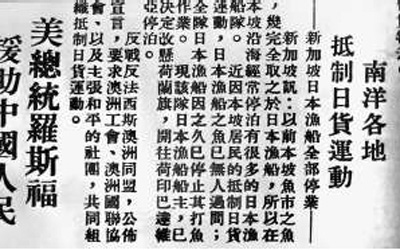 中国共产党在海外创办的《救国时报》报道南洋华侨抵制日货运动。资料图片