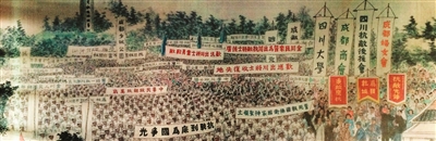 画面描绘的是四川人民欢送爱国将士出川抗日的场景。柴逸扉摄