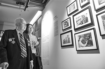 图为抗战老兵在深圳越众历史影像馆参观展览。毛思倩摄(新华社发)