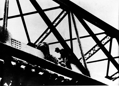 八路军爆破正太路桑掌大铁桥。