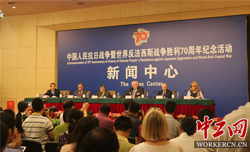 中工网北京9月2日电(记者夏赛赛)9月2日上午11时,抗战胜利70周年纪念活动新闻中心第六场记者会举行,全国友协邀请了来自美国、法国、俄罗斯及日本的国际友人解读他们对抗战的认识。