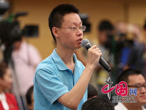 9月2日,抗战胜利70周年纪念活动新闻中心在北京梅地亚中心二层多功能厅举行第六场记者会。图为中国日报记者提问。 中国网记者 郑亮摄影