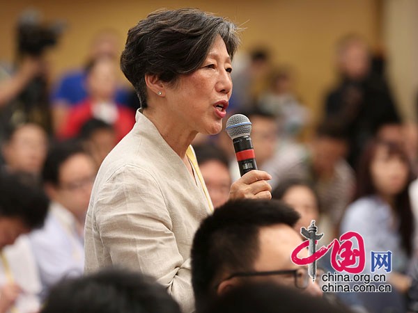 9月2日,抗战胜利70周年纪念活动新闻中心在北京梅地亚中心二层多功能厅举行第六场记者会。图为新闻周刊记者提问。 中国网记者 郑亮摄影