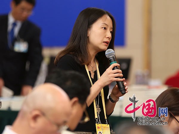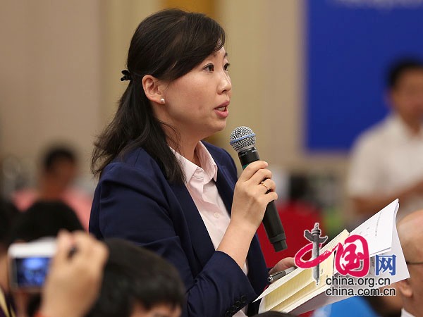 9月2日,抗战胜利70周年纪念活动新闻中心在北京梅地亚中心二层多功能厅举行第六场记者会。图为中央电视台记者提问。 中国网记者 郑亮摄影