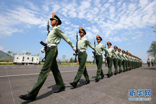 武警部队抗战英模部队方队在进行刻苦训练(7月24日摄)。新华社记者 查春明 摄 图片来源:新华网