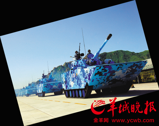 9月3日的阅兵仪式中,除了整齐的士兵方队,还有各种先进军事装备,其中南海舰队陆战队两栖突击车方队受阅的两栖突击车就是其中之一,这是我国自主研制生产的第二代两栖装甲装备,配备有高射机枪,防护上加装有“三防”设备,配有稳像式火控系统和热成像仪。其优越的陆海机动性能、强大的火力配系、较强的综合防护能力、较高的信息化水平,足以与世界最先进的两栖装甲战车媲美。