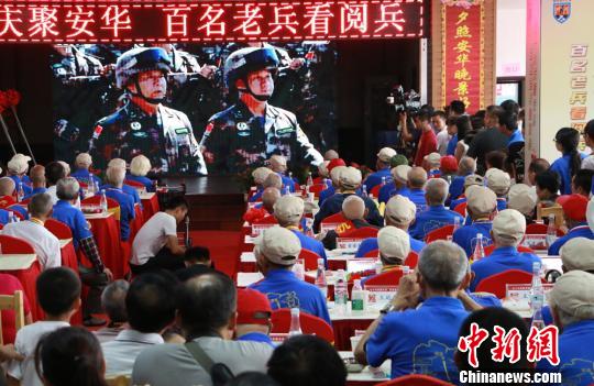 当天,包括王光亚在内的百名来自湖南省内各地的抗战老兵齐聚长沙高新区廖家坪街道安华山庄老年公寓,一起在LED大屏幕前收看阅兵式。