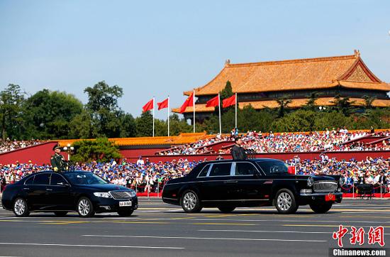 9月3日,纪念中国人民抗日战争暨世界反法西斯战争胜利70周年大会在北京隆重举行。中共中央总书记、国家主席、中央军委主席习近平检阅参阅部队。中新社记者 富田 摄