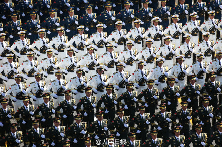 中国阅兵史上的首次设置合唱团,一千多名队员全部由总装、海军、空军所属院校的学员组成,为网友们奉献了“最霸气的现场演唱会”。