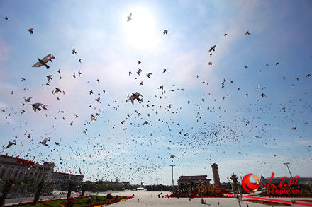 喝彩:和平鸽放飞希望
