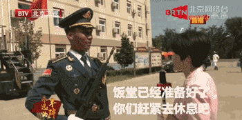 微博网友@种子醒了会发芽吗 整理了一组采访动图,主持人问一位仪仗队员,阅兵完了准备干哈呀?