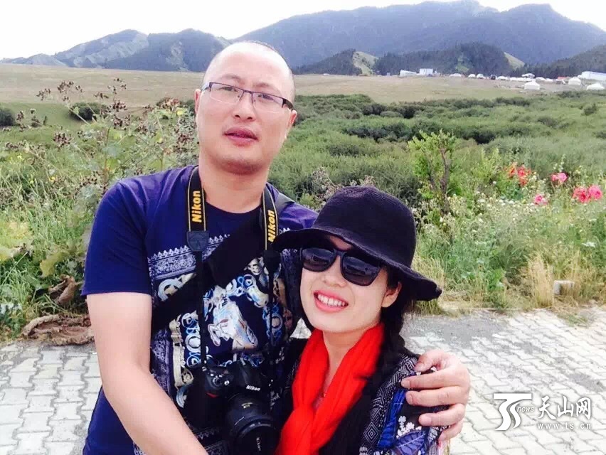 2015年8月,张婷媛带着老公一起回新疆,他们在赛里木湖合影留念。