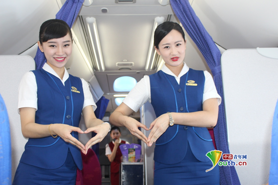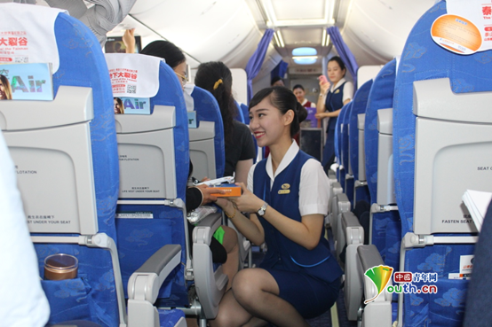 “在伟大祖国母亲的生日,我伴随着清晨的第一缕阳光飞向蓝天,无比自豪。”胡彬说,“和平年代,虽不用我们抛头颅洒热血,但热爱祖国、坚守岗位是我们每个人义不容辞的责任。”图为胡彬在飞机上向旅客赠送山航飞机模型。中国青年网通讯员 王雅楠 摄