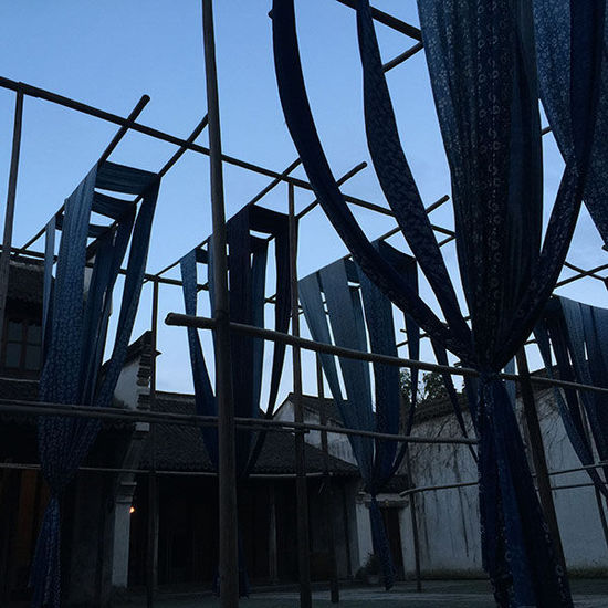 蓝印花布坊内晾晒的布,是乌镇东栅独特的风景。 澎湃新闻记者卢梦君 图