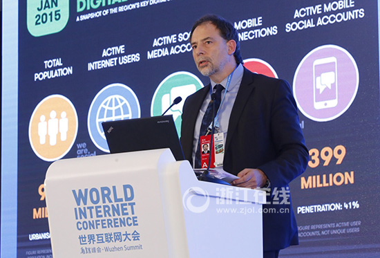 智利参议院电信委员会主席 未来挑战委员会主席 吉多·希拉尔迪发言(于诗奇 摄)