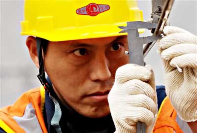 在京沪高铁北京段的高架线路上,个头1.8米、体重却只有65公斤的赵大坪趁着风稍停的空隙,抬头仔细观察接触网支柱上的设备,嘴里念念有词,还不时往手里的小本上作着记录。