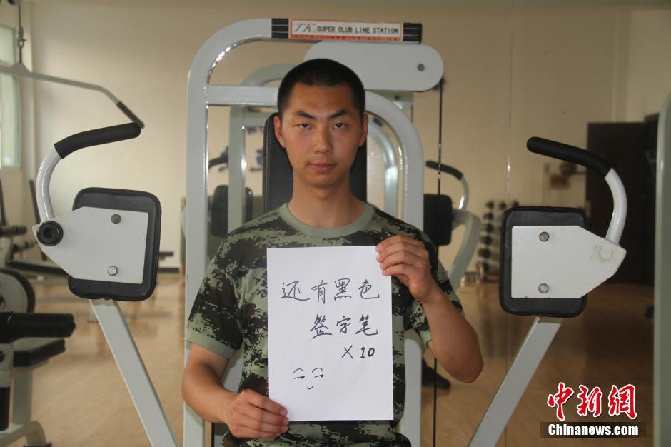 消防官兵提醒考生带上签字笔。 付传虎 摄