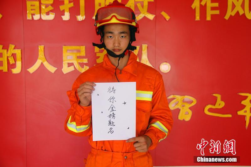 高考在即 消防官兵拍“萌照”送祝福
