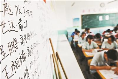 首钢矿业公司职工子弟学校的高三学生将自己的高考愿望写在目标墙上 摄影/本报记者 郝羿