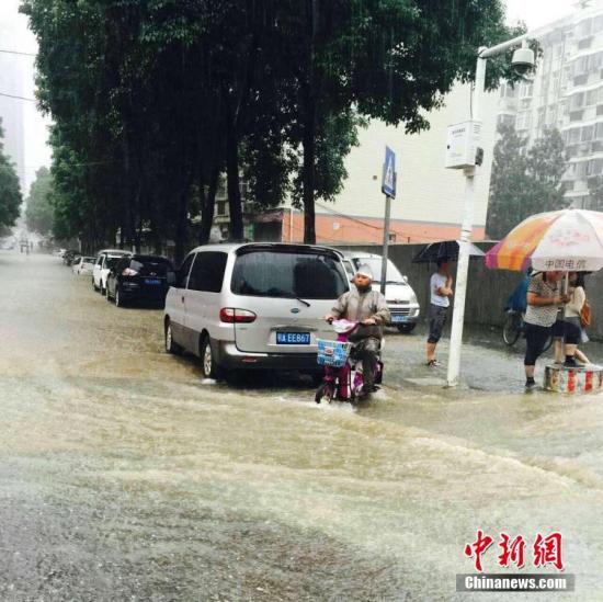 中新社记者在现场看到,武汉市武昌公正路上的一处涵洞,积水最深处已经没过道路中央近一米高的隔离栏。中国农业银行武昌支行门口,大门紧闭。该行工作人员介绍说,由于武汉市暴雨造成市区严重渍水,运钞车无法按时到达网点,因此暂时停止所有柜台业务。