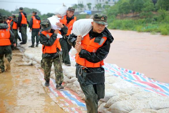 在安徽当涂,丹阳湖某农场大坝外石臼湖水位告急,一旦决堤将危及附近一区三镇近10万群众。接到险情报告后,南京军区善后办派出近200名官兵、17台轮式车辆和一支应急医疗队,携带救灾物资和药品器材,火速奔赴一线抗洪抢险。目前,已处理堤坝决口隐患20余起,有效阻止了洪水漫灌。在湖北武汉,与长江干堤仅有百余米距离的青山区倒口湖发生管涌险情。接到命令后,火箭军指挥学院紧急出动183名官兵组成的抗洪突击队,携带16台各类救援车辆到达现场后,迅速卸载物资,立即投入战斗。官兵们冒着瓢泼大雨,奋战数小时,终于堵住新形成的管涌。在湖南益阳,驻益阳部队共出动官兵千余人次、组织民兵预备役人员万余人次,协助地方转移受困群众数万人,排除各类险情千余处,加固河堤危险地段3000余米。
