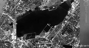 沙湖曾是武汉第二大“城中湖”。近年来,先是兴建友谊大道填占部分沙湖,随后,伴随着房地产开发的热潮,小区和办公楼进一步将沙湖蚕食一半。看看2000年的沙湖(上图)与2016年的沙湖(下图)对比。不间断地填湖开发,把沙湖从东南西北各个方向挤压。一条楚汉路,将沙湖拦腰截断。