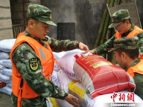 资料图:武警泉州支队官兵在泉州石狮市祥芝镇国家中心渔港协同地方渔民加固渔防。 李涛 摄