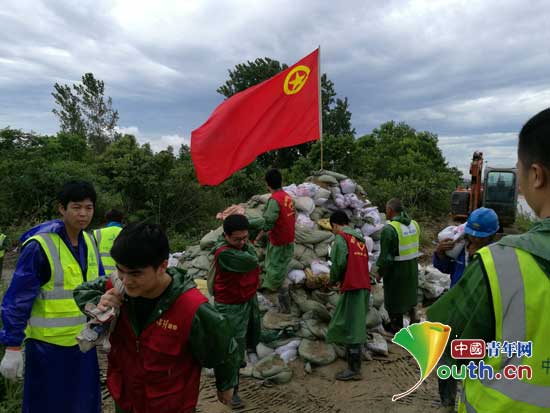 团青心手相连冲在抗洪救灾一线 要筑就最坚实的堤坝