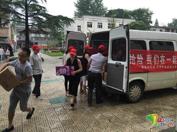 团安徽省池州市委、市青年企业家协会联合社会各界爱心人士奔赴灾区运送救灾物资。团安徽省委供图