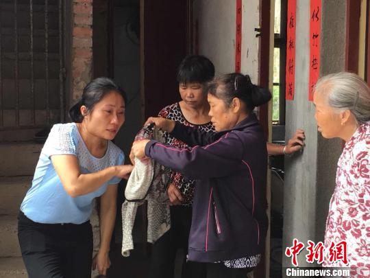 图为妈妈脱下长袖衫给将出发去山中找父亲的吴章梅穿上,以防草木割伤。 林春茵 摄