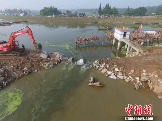中新网岳阳7月12日电 (记者 白祖偕 刘双双 傅煜)经过连续数十个小时的奋战,7月12日8时18分,湖南华容新华垸溃口正式合龙。