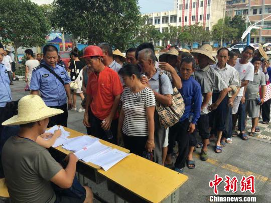 7月12日上午9点,华容新华垸村民在安置点领取应急救助金。 刘双双 摄