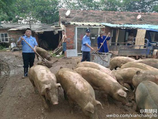 民警分洪前客串“猪倌” 赶2000余头猪安全转移