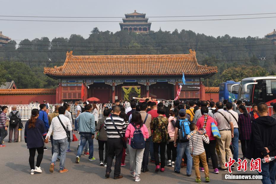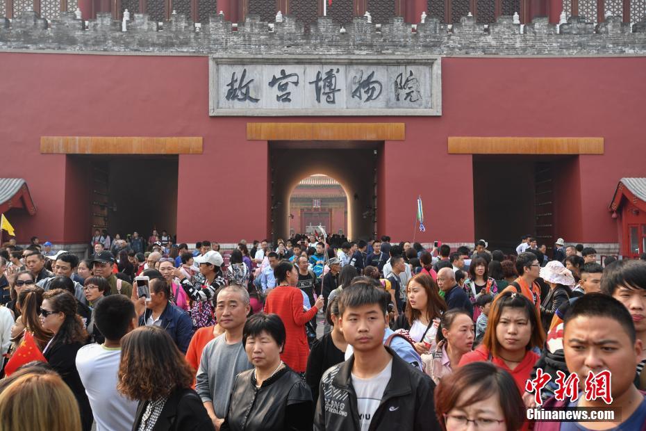 10月1日,“十一”假期首日,北京故宫博物院、景山公园、北海公园等景区游人众多。 中新社记者 崔楠 摄