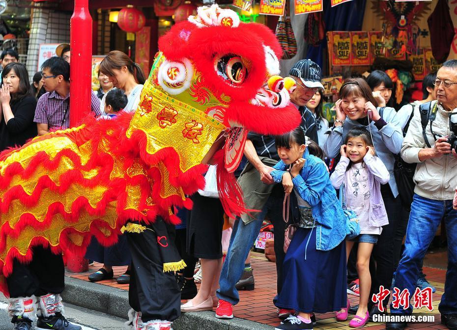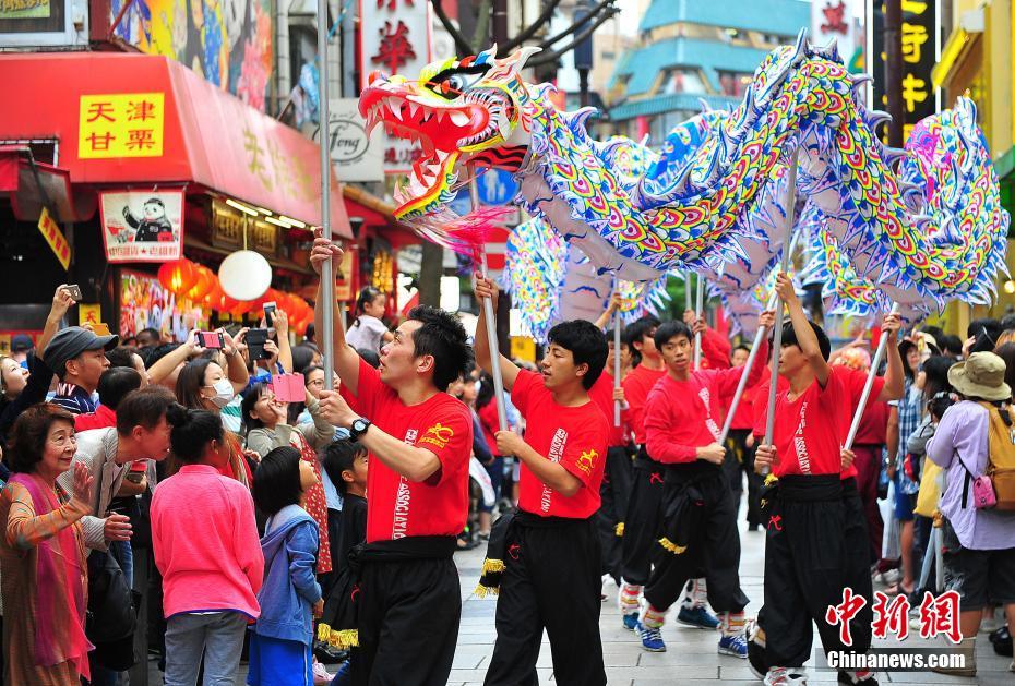 在著名华埠日本横滨中华街街区,当地侨胞10月1日下午盛装举行庆祝中华人民共和国成立67周年游行,吸引无数当地民众沿街驻足观看。中新社记者 王健 摄