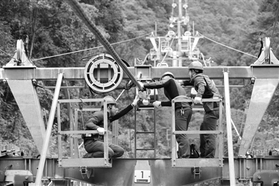 9月29日,工作人员对武陵源天子山索道进行安全检查新华社发 (吴勇兵 摄)