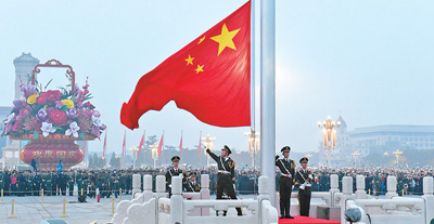 “革命先烈用鲜血染红五星红旗,我要继承先辈遗志,努力学习,建设祖国。”北京市海淀区翠微小学学生王子伊说。来自安徽的高中生汝静平生第一次在天安门广场参加升旗仪式,他激动地说:“我感到我的心和祖国的心一起跳动,感受到祖国的强大!”